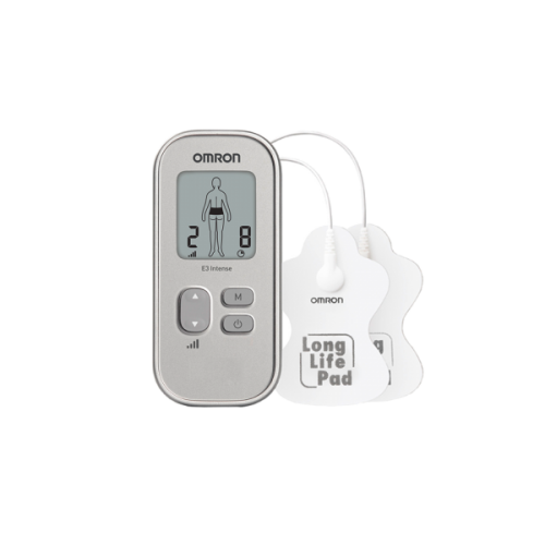OMRON TENS E3 je naprava za lajšanje bolečin brez uporabe zdravil. Naprava deluje s pomočjo blagih elektro-stimulativnih pulzov, ki imajo trojni učinek: i) sproščajo endorfine (naravne blažilce bolečine, ki jih proizvaja naše telo); ii) blokirajo "sporočila" o bolečini in iii) izboljšajo kroženje krvi. Ima tri masažne funkcije (tapkanje, gnetenje, drgnjenje), 15 stopenj jakosti in 9 prednastavljenih masažnih programov. Naprava je majhna in jo lahko pospravite kar v torbico, tako da je uporabna tudi na delu ali na poti. Je zelo preprosta za uporabo z intuitivnim vmesnikom, ki je uporabniku prijazen.